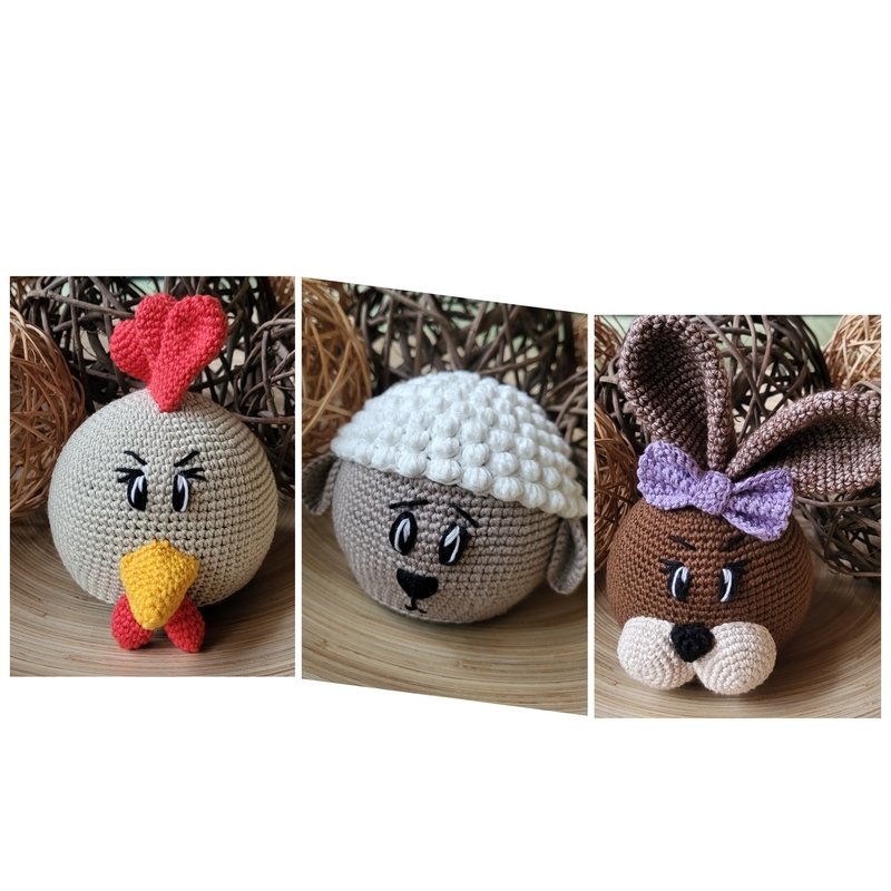 In diesem Paket sind gleich drei Anleitungen, Hase, Huhn und Schaf.