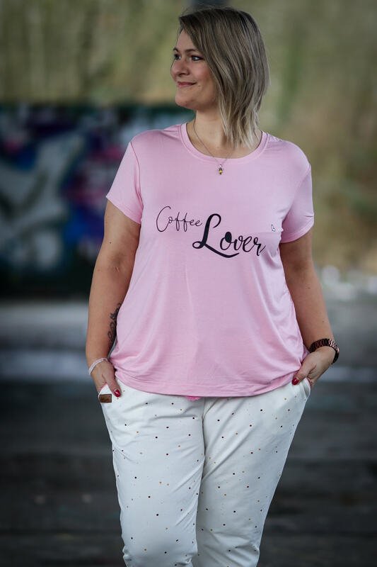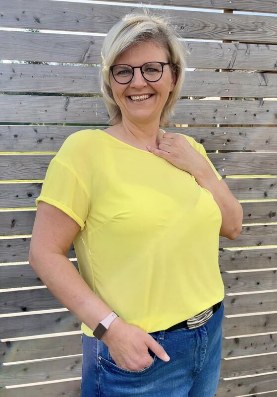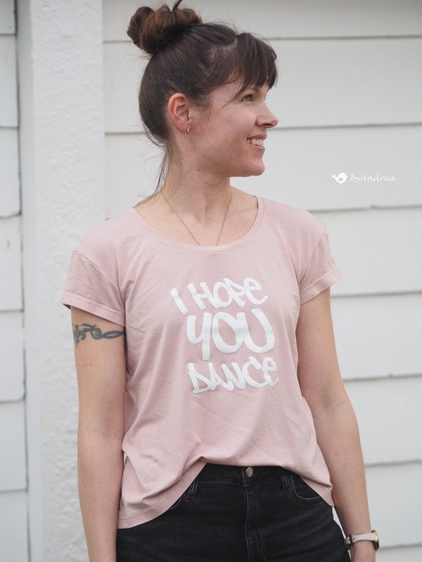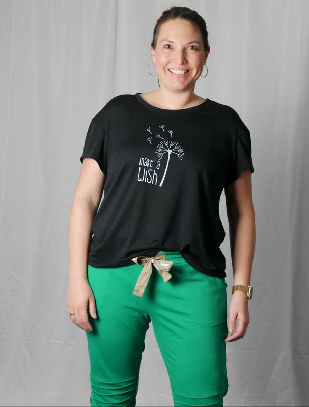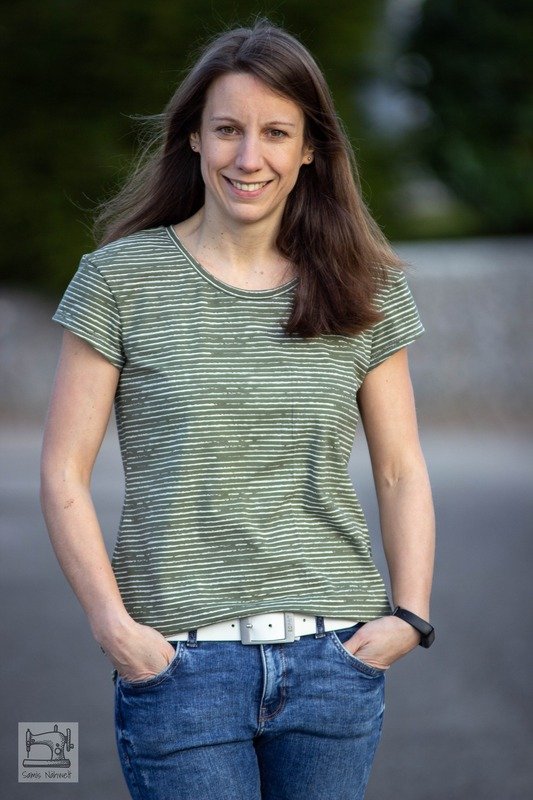 Für diesen Schnitt empfehlen wir weich fallende und fließende, dehnbare Stoffe wie zum Beispiel Viskosejersey. Du kannst den Schnitt aber auch aus anderen dehnbaren Stoffen, die etwas fester sind, nähen – wie z. B. Baumwolljersey, leichter Strickstoff oder Modaljersey. Dann wird das Shirt aber nicht ganz so locker fallen.