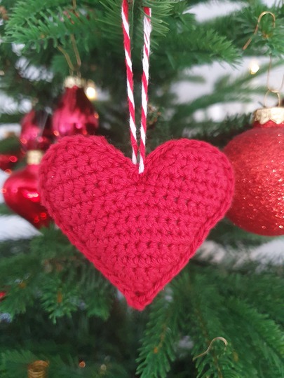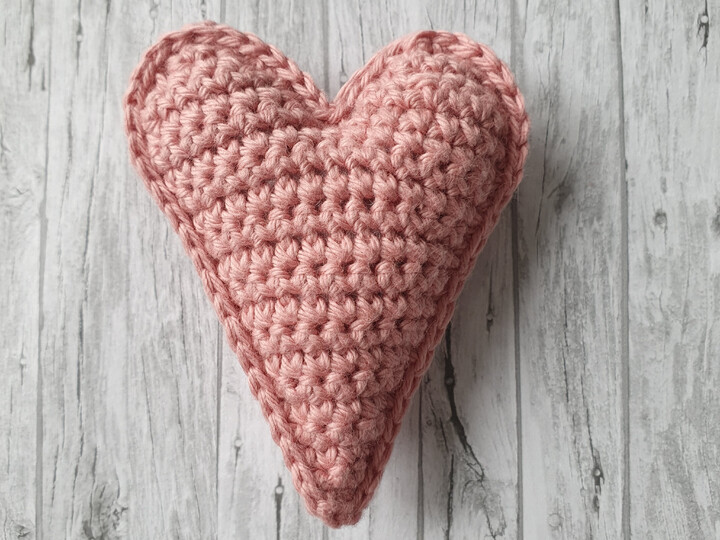 Ich habe Baumwolle 8/4 und Nadelstärke 2.5 mm benutzt. Bitte beachte, dass die Herzen mit anderer Wolle, Nadelstärke und Häkelfestigkeit grösser oder kleiner ausfallen können.