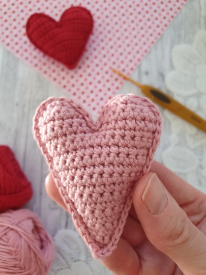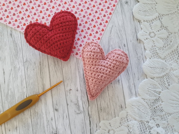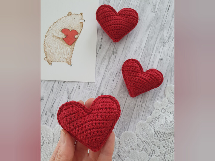 Mit dieser Häkelanleitung kannst du selber kleine Herzen häkeln. Die Anleitung enthält Beschreibungen für 2 verschiedene Herz-Varianten (ein schmaleres Herz und ein breiteres Herz).