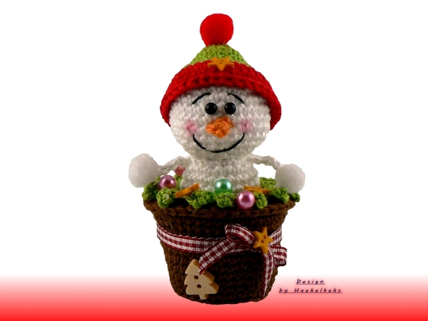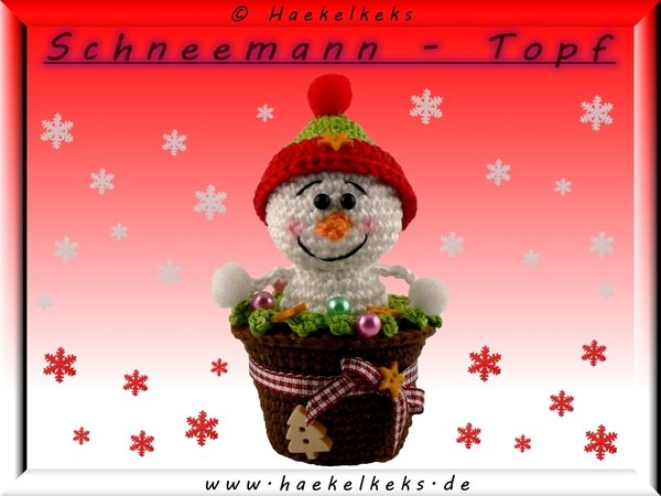Wir verkaufen hier die passende, leicht verständliche und bebilderte Häkelanleitung zum Schneemann im Topf.