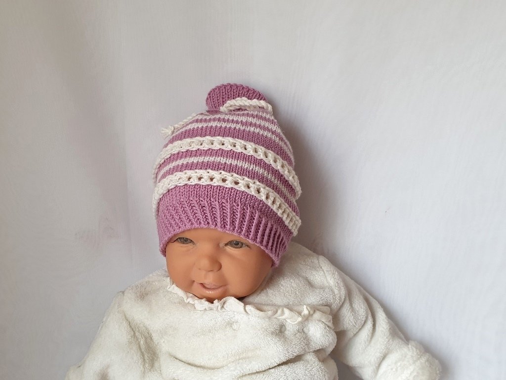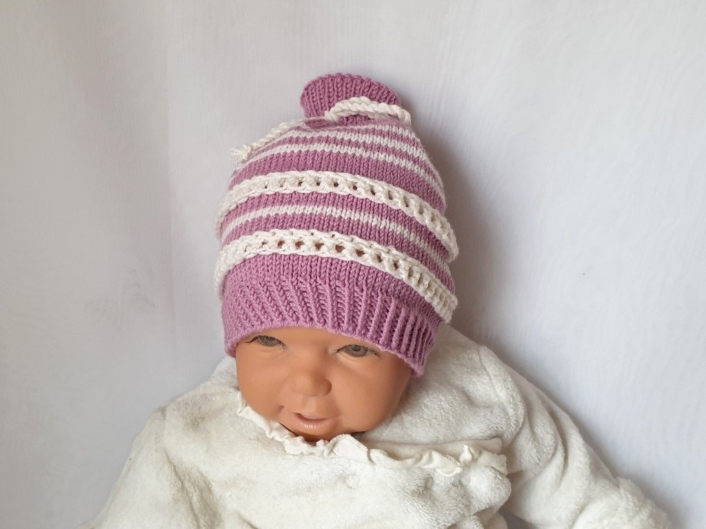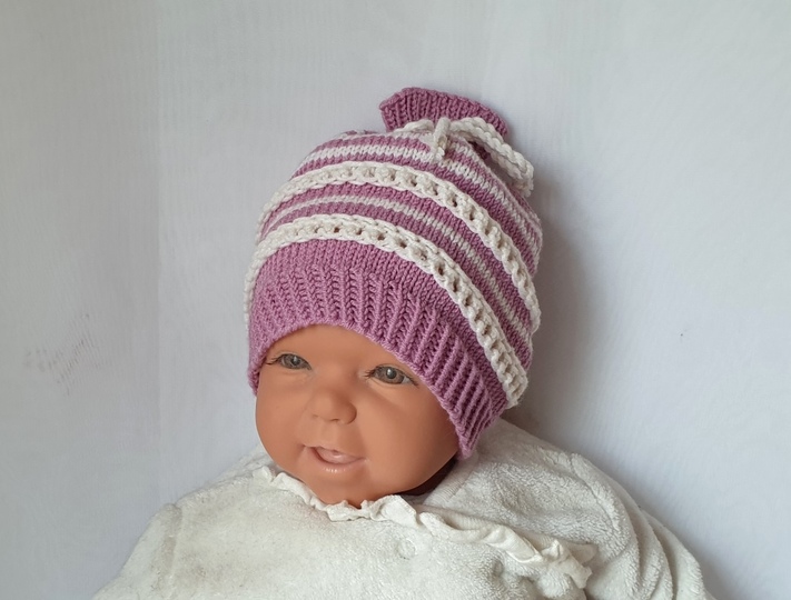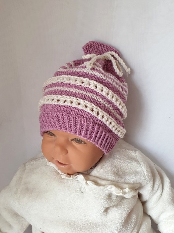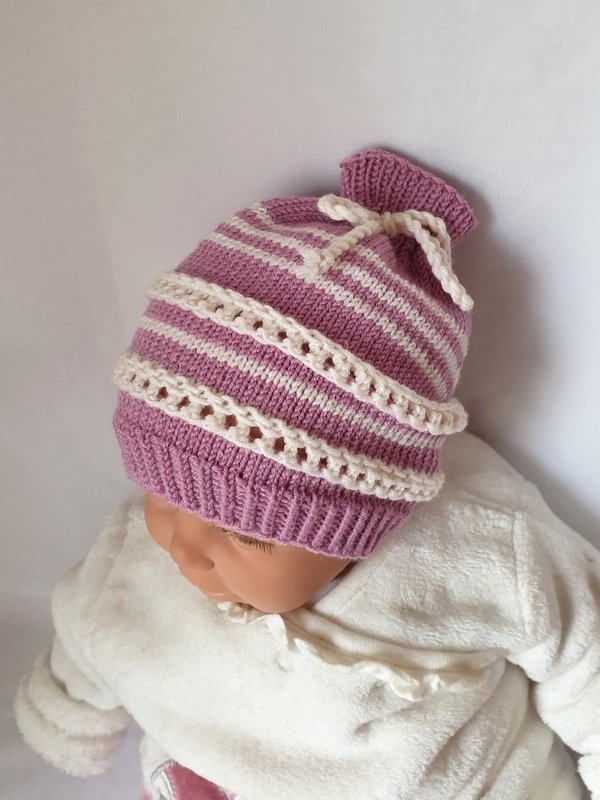 Strickanleitung Baby-Mütze mit Lochmuster, ca. 0 - 6 Monate