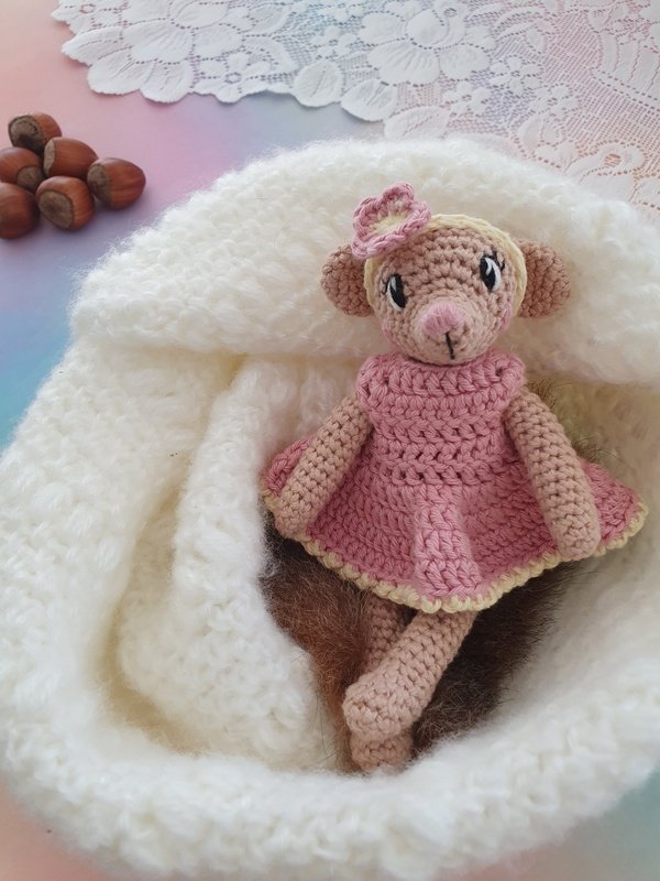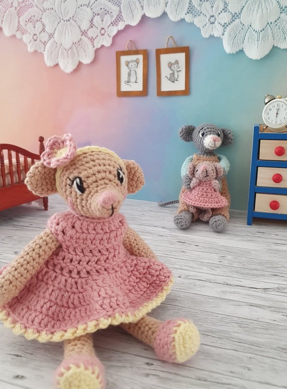 Mit dieser Anleitung kannst du MÄUSCHEN ISABELLA selber häkeln. Diese Anleitung ist eine BASISANLEITUNG. Anhand dieser Anleitung kannst du Isabella, ein Kleid, ein paar Schuhe und ein Haarband häkeln. Nach und nach findest du weitere Anleitungen mit Kleidern und Accessoires für Isabella. In diesem Shop findest du ebenfalls die Anleitung für Mäusepapa Anton und Mäusebaby Ida.