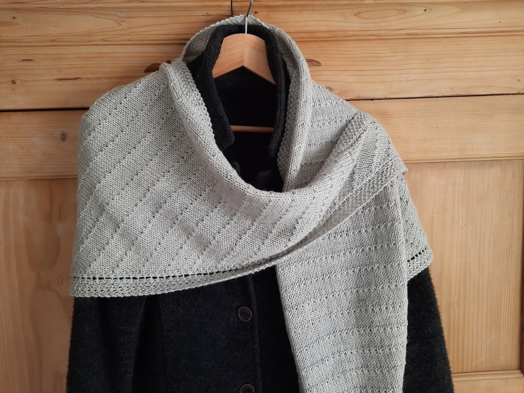 Mein Tuch misst 180 x 63 cm, du kannst es aber natürlich auch größer oder kleiner stricken.