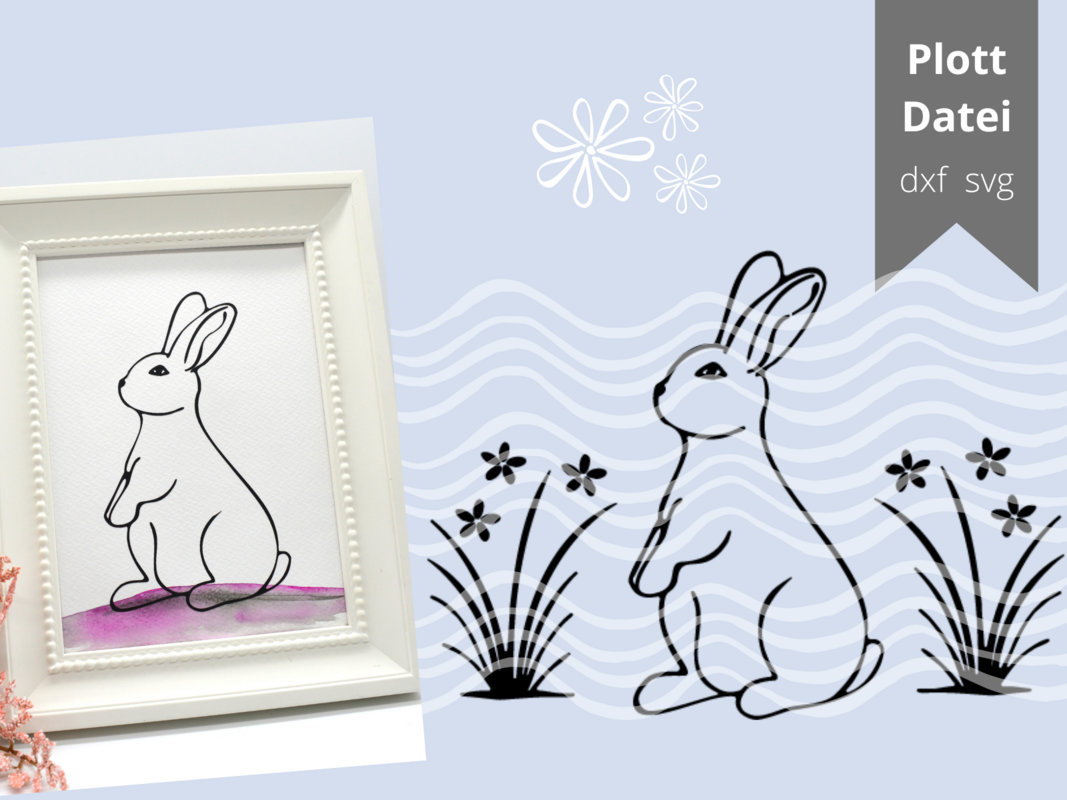 Plotterdatei für einen kleinen Hasen in der Wiese.