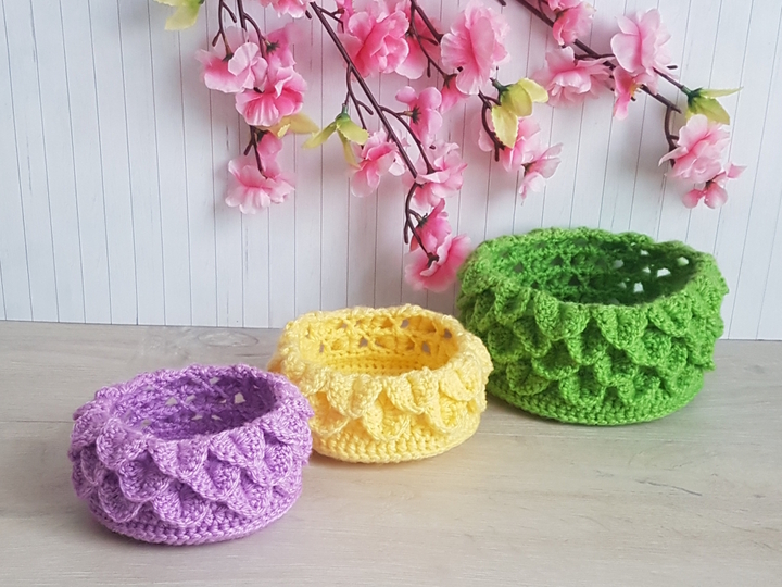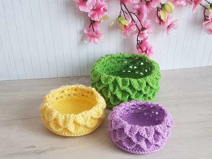 Ihr könnt natürlich auch jedes andere Garn, mit dazu passender Häkelnadel, verwenden. Dadurch ändert sich nur die Größe eurer Körbchen.