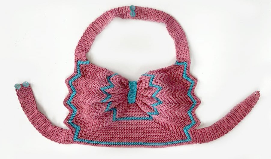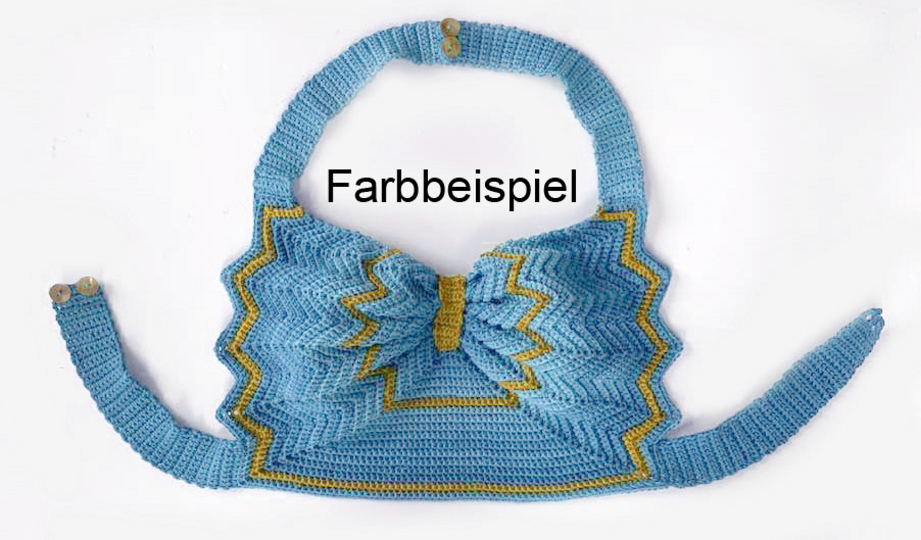 Das Sommerbustier Marylin ist vorne 33 cm breit + 29 cm hoch und wiegt 130 gr