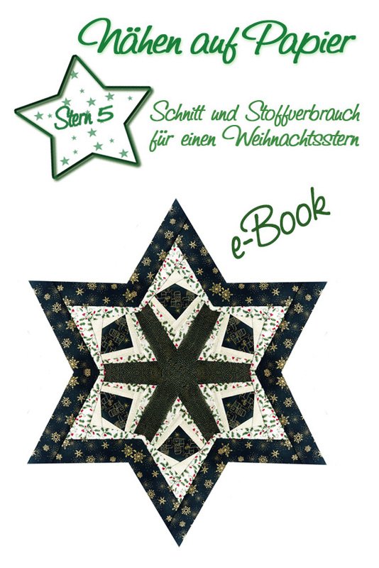 Weihnachten kommt mit großen Schritten und ist immer so schnell da. Nähen auf Papier (Paper Piecing) macht Spaß und hat Suchtfaktor. Dieses e-Book enthält Angaben zum Materialverbrauch und einen Schnitt zum Nähen auf Papier. Sehr schön sieht der Stern auch in anderen Weihnachtsstoffen aus. Fertiggröße ca. 60 cm.