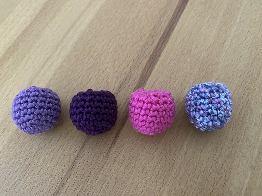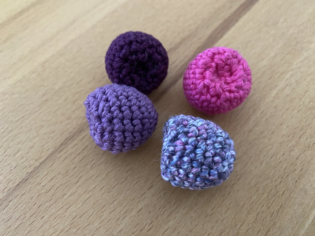 Je nachdem welches Garn und welche Häkelnadelstärke verwendet wird, kann die Größe der Beeren variieren. Dickeres Garn und eine größere Nadel macht die Beeren größer.
