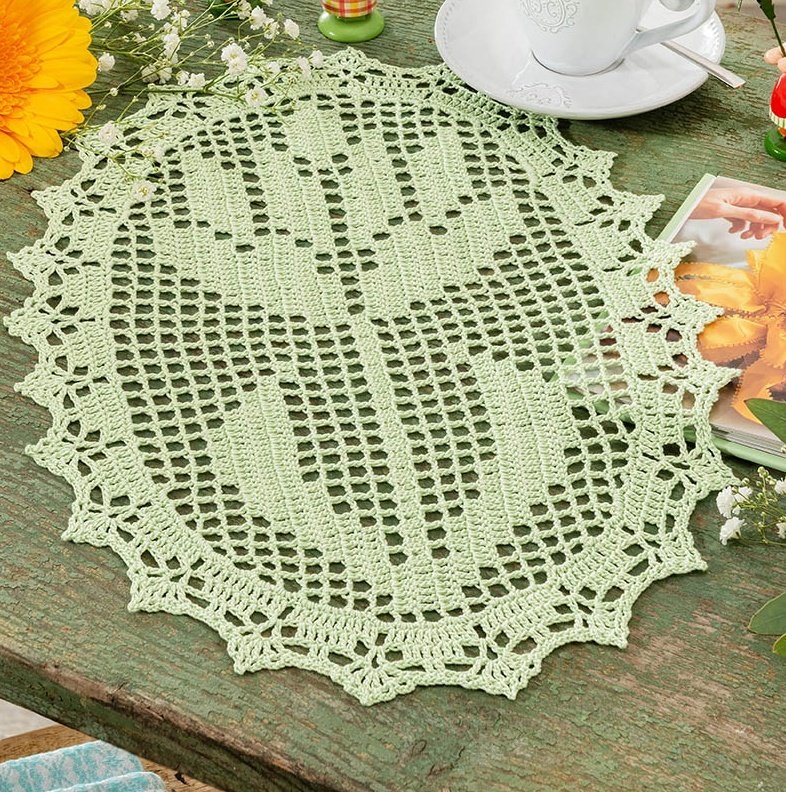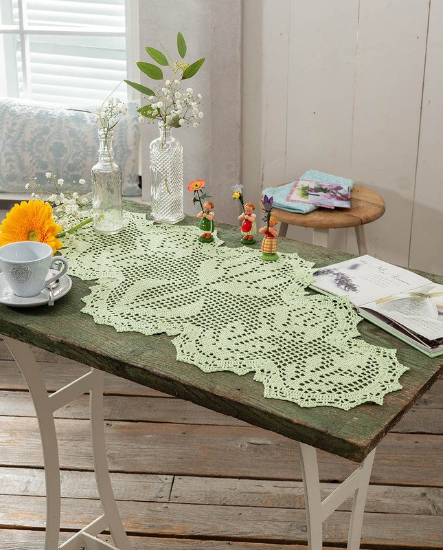a ca. 50 g Baumwollgarn HÄKELSTAR 100 in Maigrün von PRO LANA (LL 566 m/100 g), 1 ADDI Häkelnadel Nr. 1,75–2.