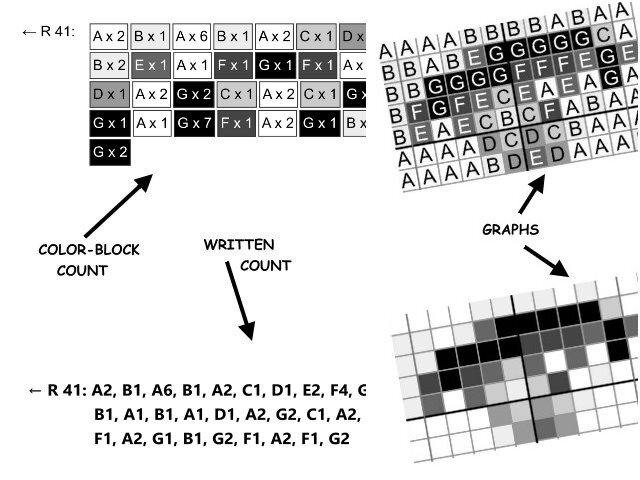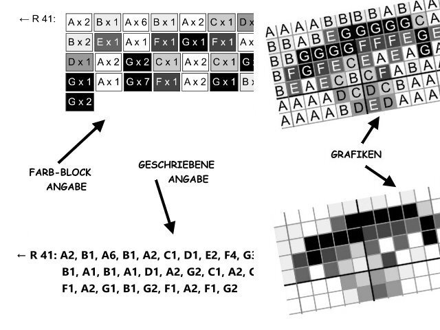-farbige Zahlen-Blöcke für jede Zeile für feste Masche