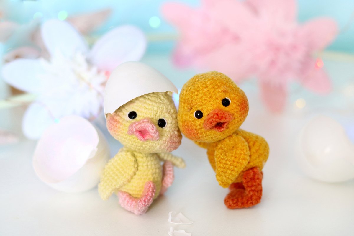 Häkelnadel 1,25 mm. Entchen hellgelb: Katia Fair Cotton 50 gr/ 155 m. (15 gr für Körper, Kopf und Flügel, 5 gr. Für Schnabel und Füße) Häkelnadel 1,25 mm.