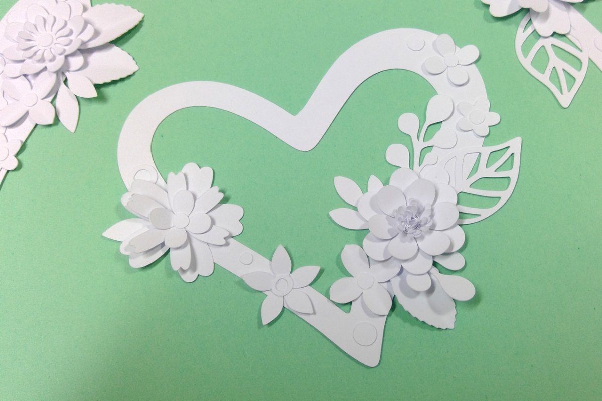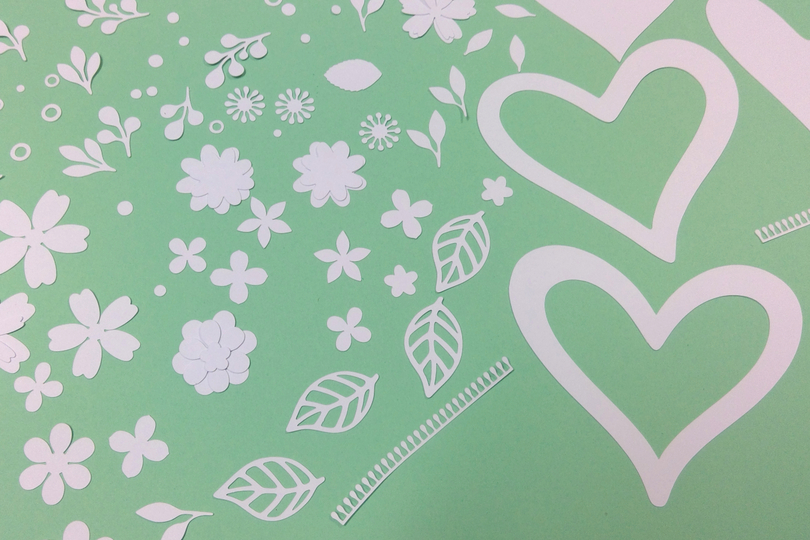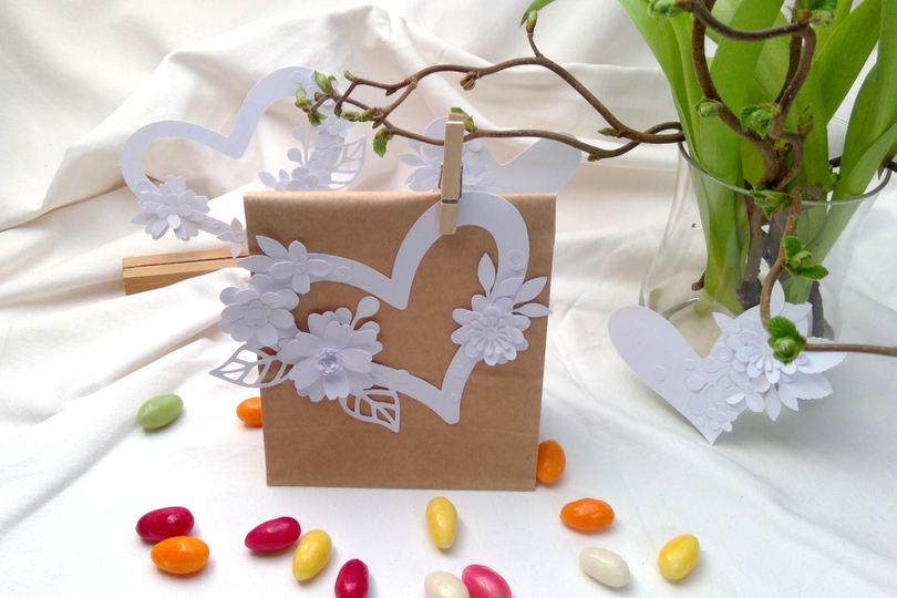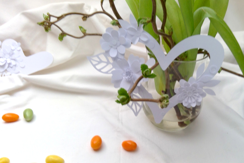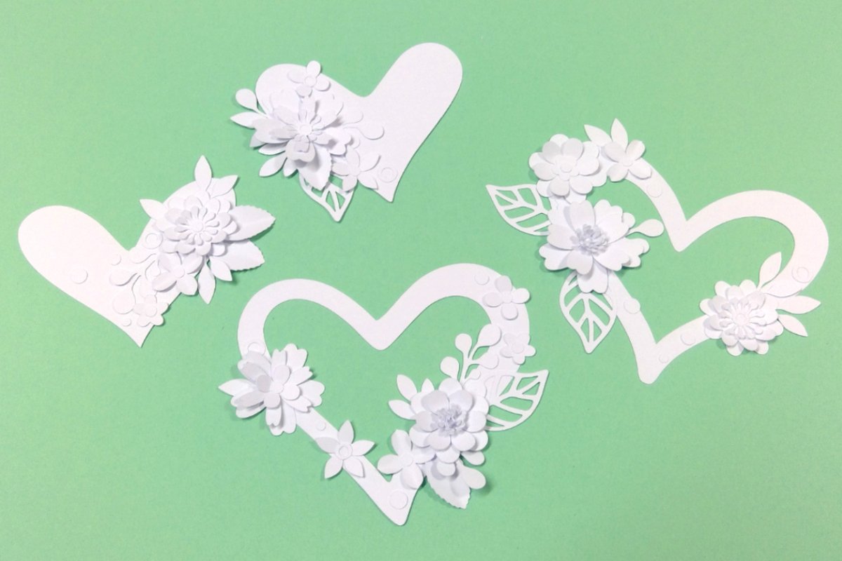 Mit dieser vielfältigen Plotterdatei kannst Du mit Blumen und Herzen Dekorationen für
