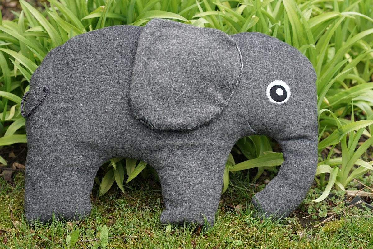 Dieses Kissen in Elefantenform ist schnell genäht, ein wunderschönes Geburtstagsgeschenk zum Kuscheln und perfekt zur Restverwertung.