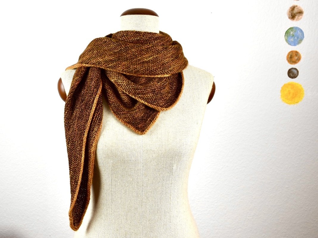 Der Crespo ist ein sehr einfach konstruiertes Tuch, das Dir viele Möglichkeiten bietet. Du kannst wie bei meinem Modell den Hauptteil in einer Farbe stricken und einen I- Cord in Kontrastfarbe anstricken. Du kannst Streifen einstricken und den I-Cord direkt mitstricken. Oder Du verwendest Garnreste, Garne unterschiedlicher Struktur und Stärke. Ich habe zwar meine Maschenprobe angegeben, sie ist aber völlig unwichtig. Verwende die Nadelstärke, die zu Deinem Garn und Deiner Strickweise paßt und ein lockeres Gestrick ergibt.