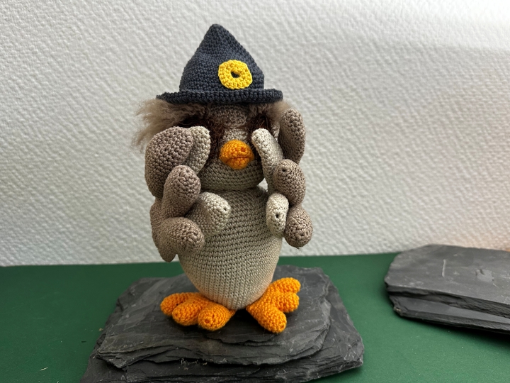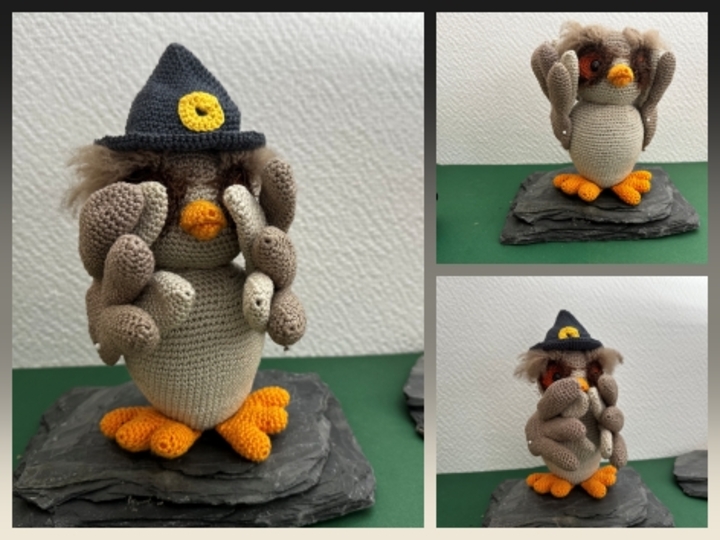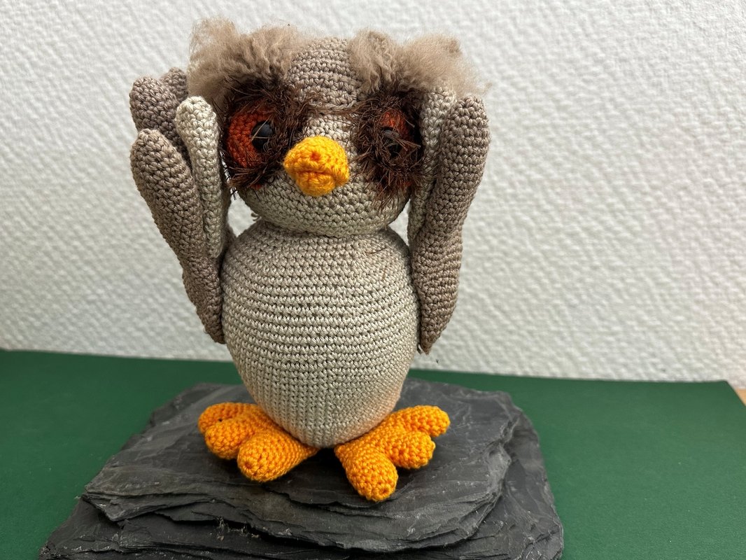 Ihr kauft hier eine Häkelanleitung per PDF für eine Eule. Die Anleitung ist variabel, die Eulen können beliebig verwendete werden. Es können die 3 weisen Eulen oder einfach eine Eule mit offenen Flügeln gehäkelt werden.