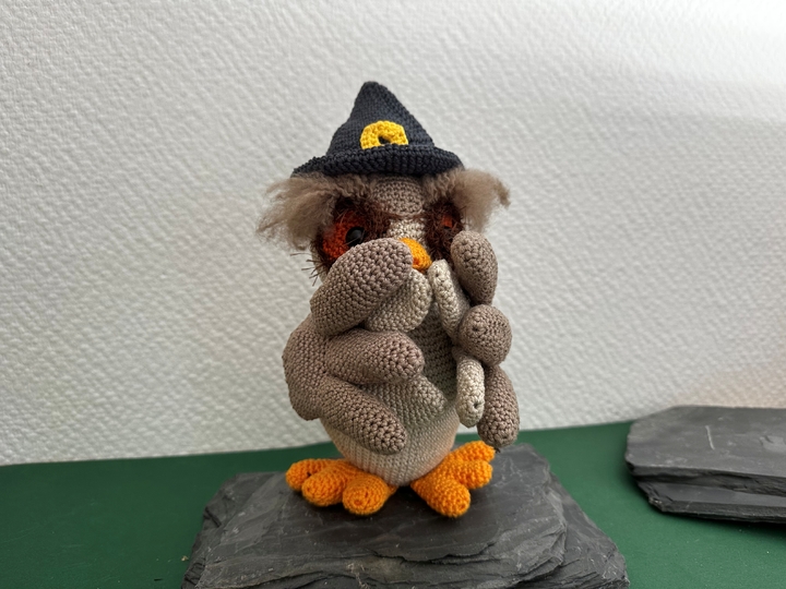 Unter Verwendung des angegebenen Materials wird die Eule mit Hut ca. 28