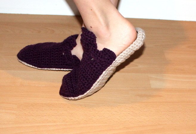 Hier sind genau die richtigen Socken- / Hausschuhe in den größen 36 bis 45. Eine schöne, ausführliche beschriebene und bebilderte Anleitung.