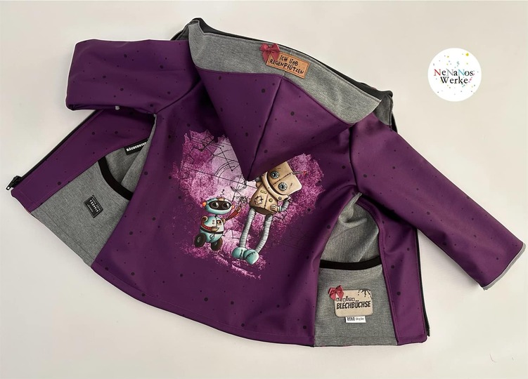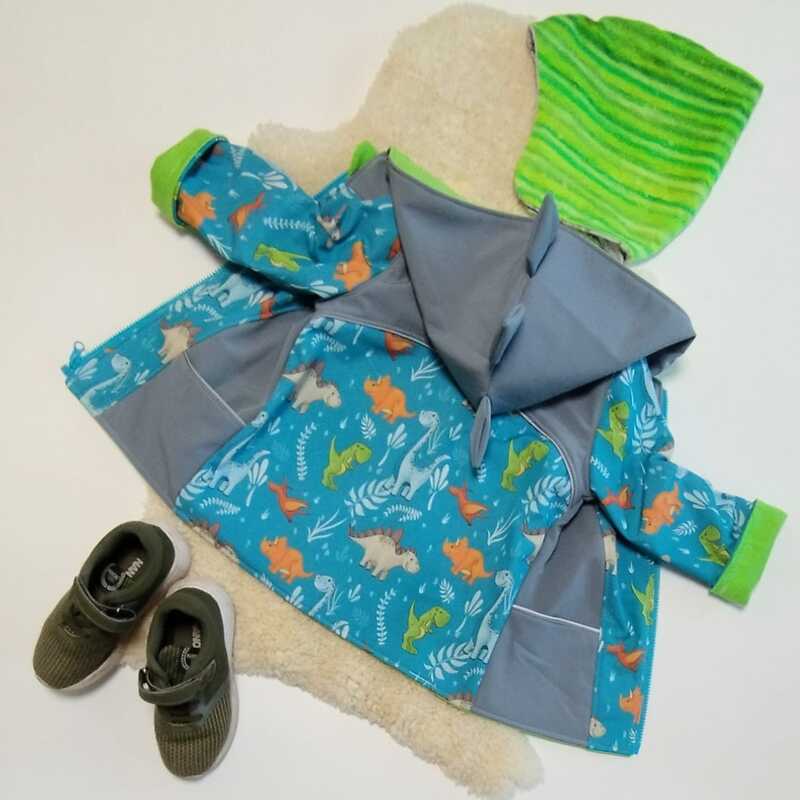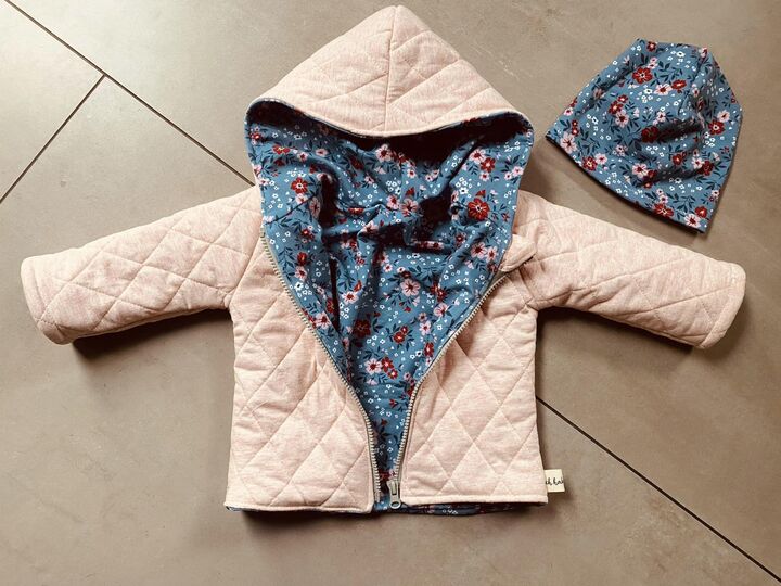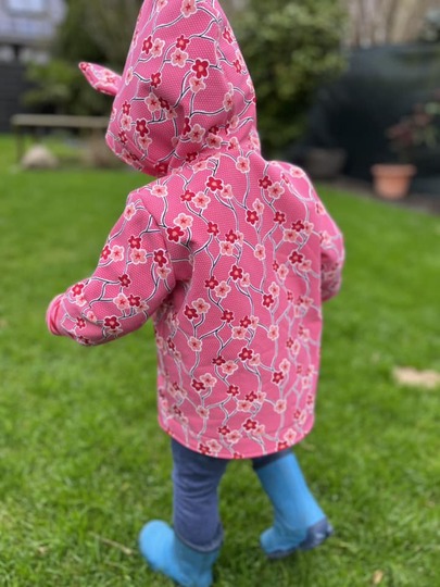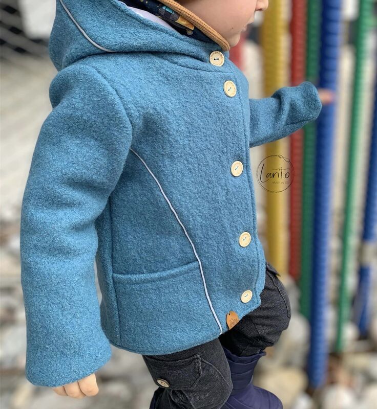 Du kannst die Jacke von Gr. 62 – 104 jeweils in Doppelgrößen nähen – die Ärmel werden dabei 1x umgekrämpelt, sodass die Jacke super lange mitwächst.