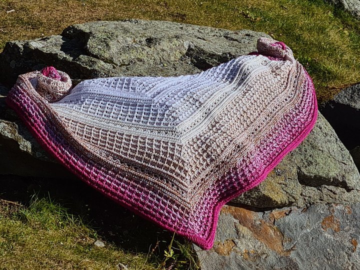 Waffelmonster ist ein flaches, dichtes und wärmendes Dreieckstuch mit dem ultimativen Kuschelfaktor.