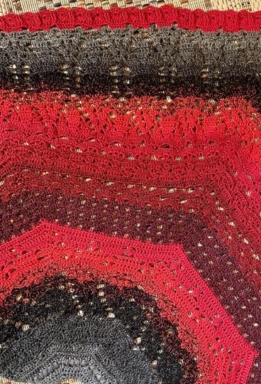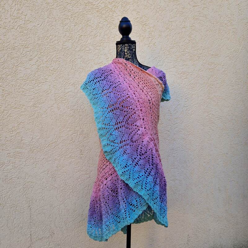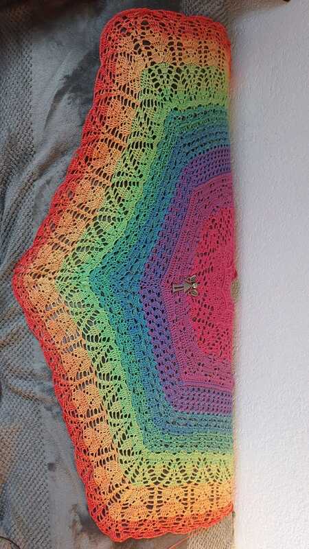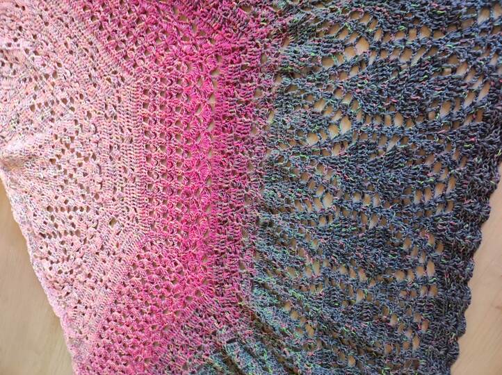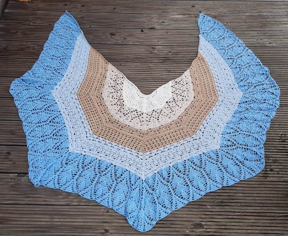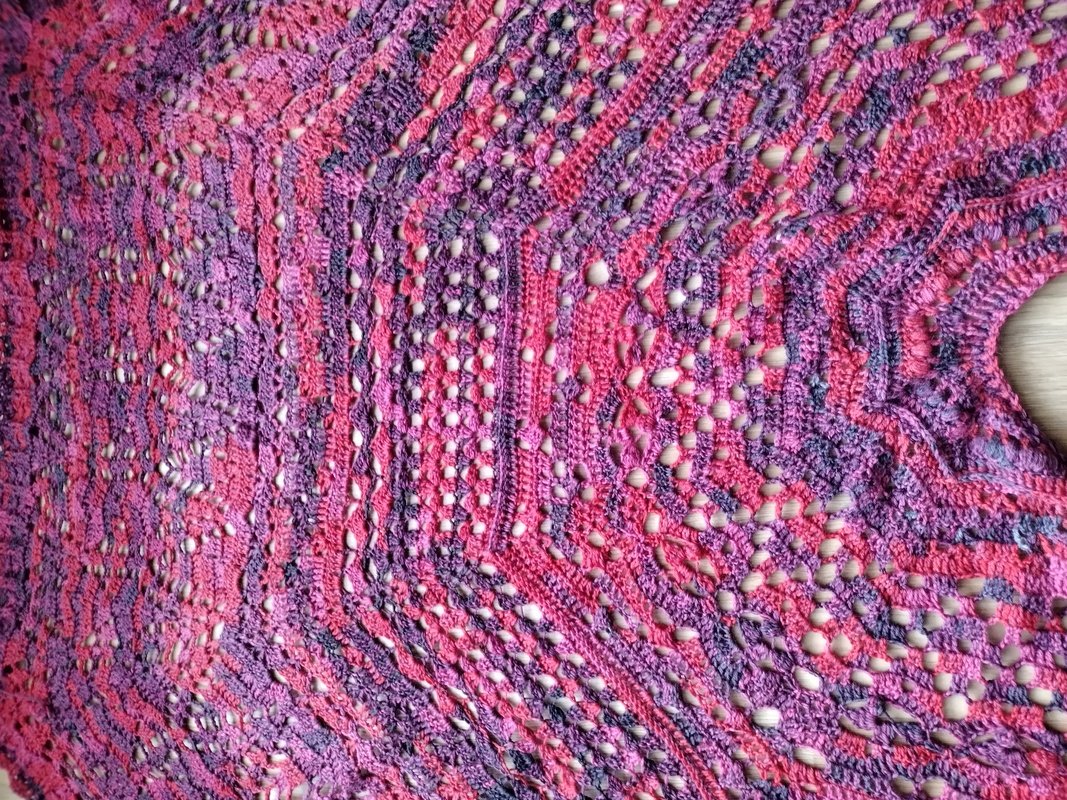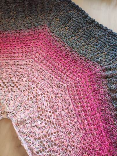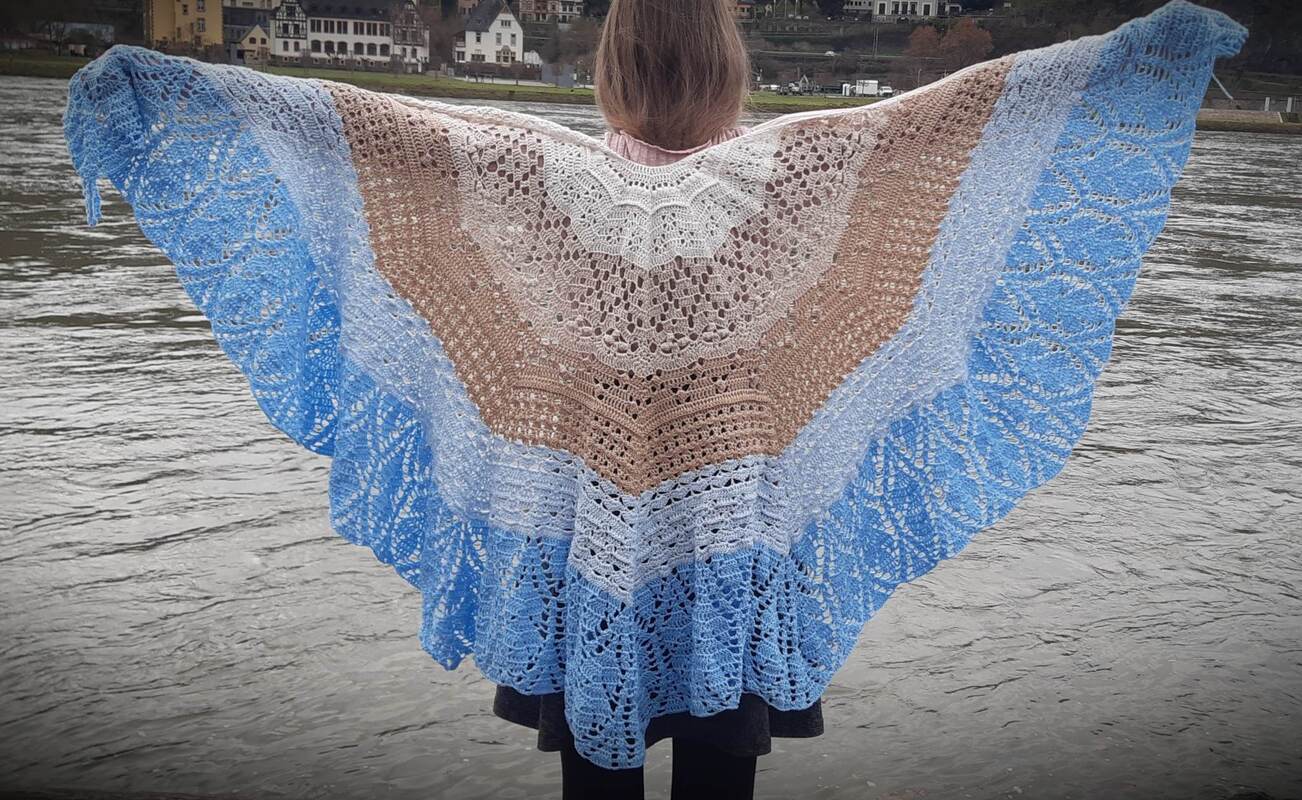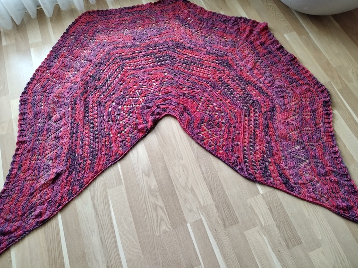 Das Tuch besteht aus vielen verschiedenen Mustern, die relativ komplex sind. Man sollte schon ein bisschen Erfahrung im Häkeln haben, oder gewillt sein, viel Neues zu lernen!