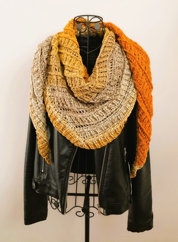 Das Tuch Ione ist ein wunderschönes kuscheliges flaches Dreieckstuch, das in jeder Größe gehäkelt werden kann. Die Anleitung ist Anfänger- und Fernseh-tauglich, die Reihen wiederholen sich und gehen schnell ins Gedächtnis über.