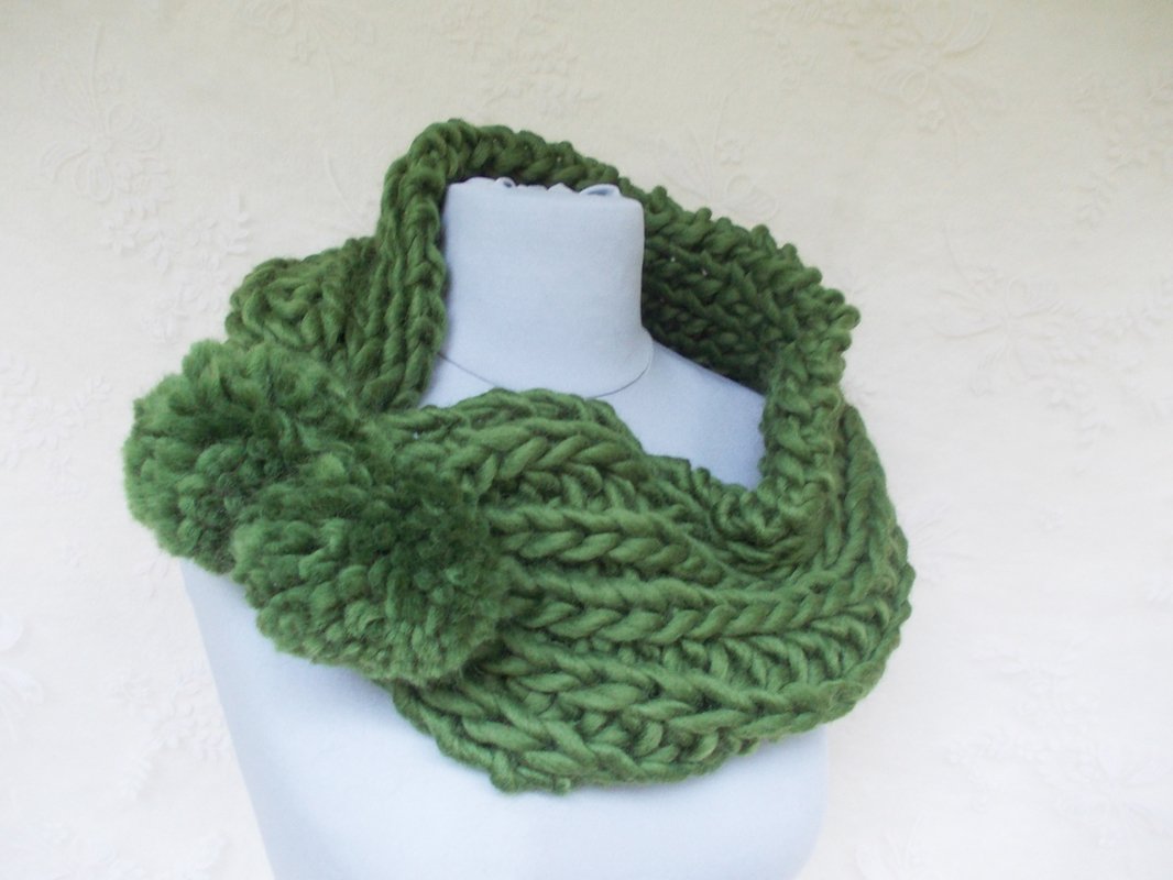 Dieses wunderschöne Modell habe ich für die Beanie "woolelegance" (Anleitung im Shop erhältlich) entworfen (siehe zwei Bilder der Beanie in den Galeriebildern). Der Rundschal ist die pure Eleganz. Er kann offen oder geschlossen getragen werden. Dazu die tollen Bommeln (Anleitung kostenlos bei mir im Shop).