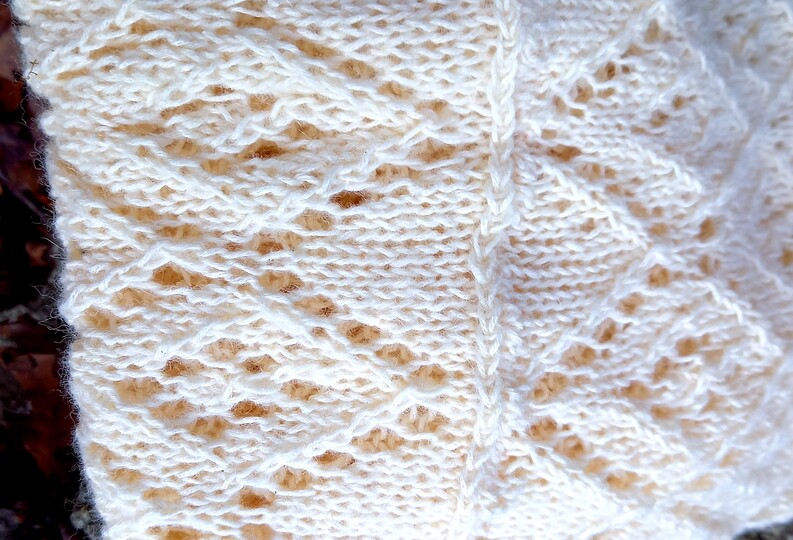 Die Anleitung umfasst eine genaue Beschreibung des Musters inklusive einer Strickschrift. Sie ist so konzipiert, dass sowohl die Länge als auch die Breite der Arbeit beliebig variiert werden können.
