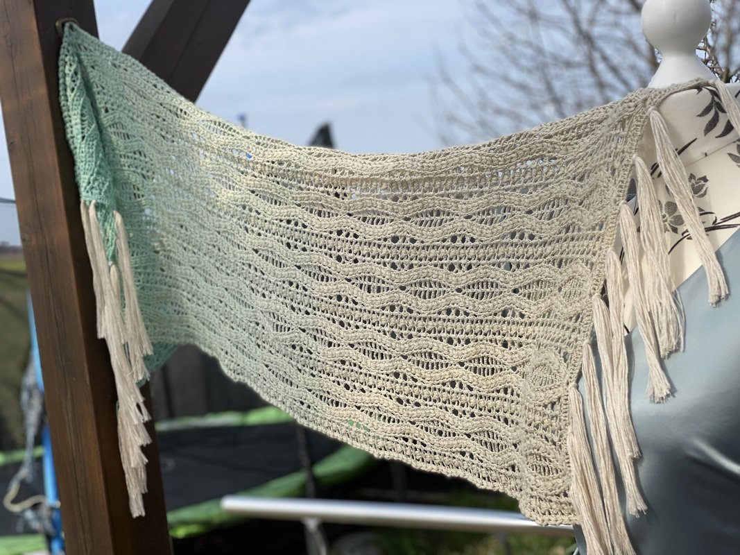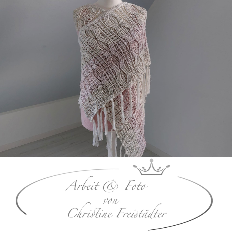 Bitte denke daran, dass die Größe der Stola auch immer sehr stark von deinem Häkelstil und der Garnstärke abhängt und es daher Abweichungen geben kann.