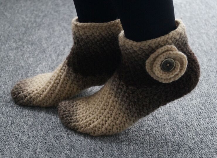 Weiche und Warme Haussocken (Hausschuhe) sind schnell und einfach zu häkeln.