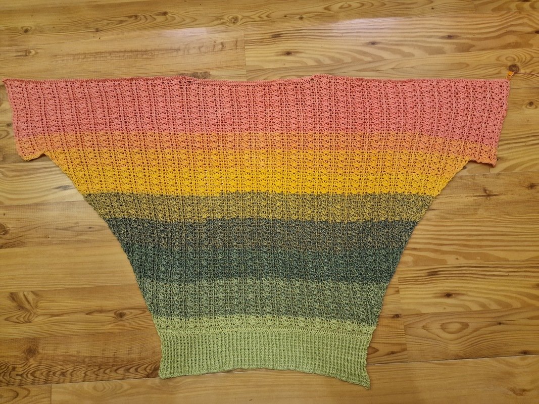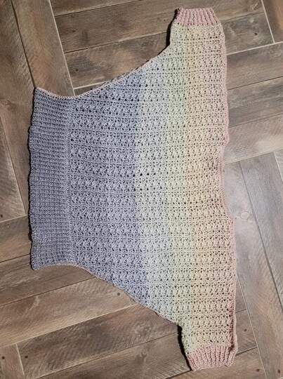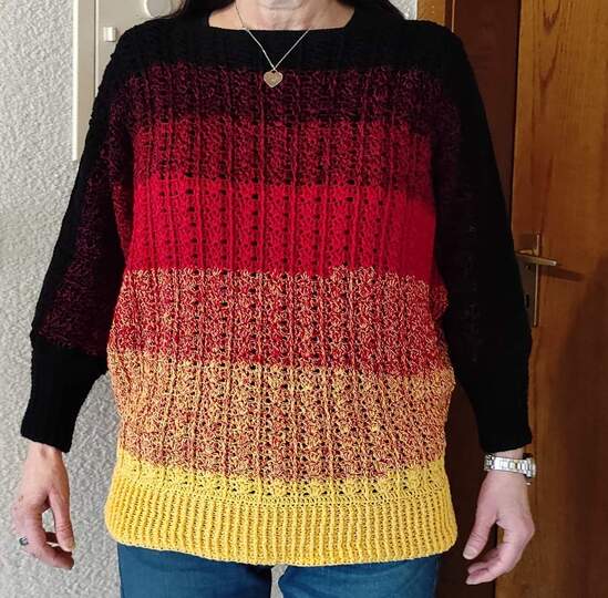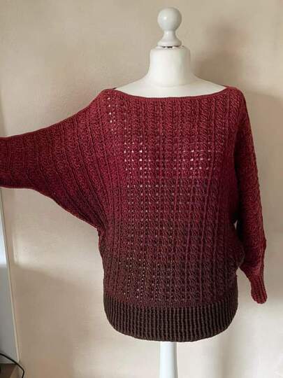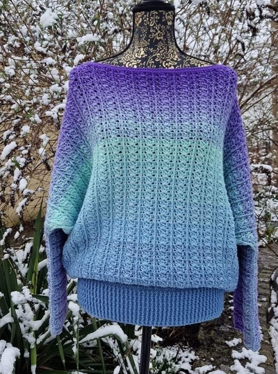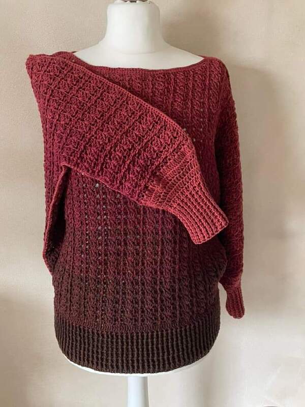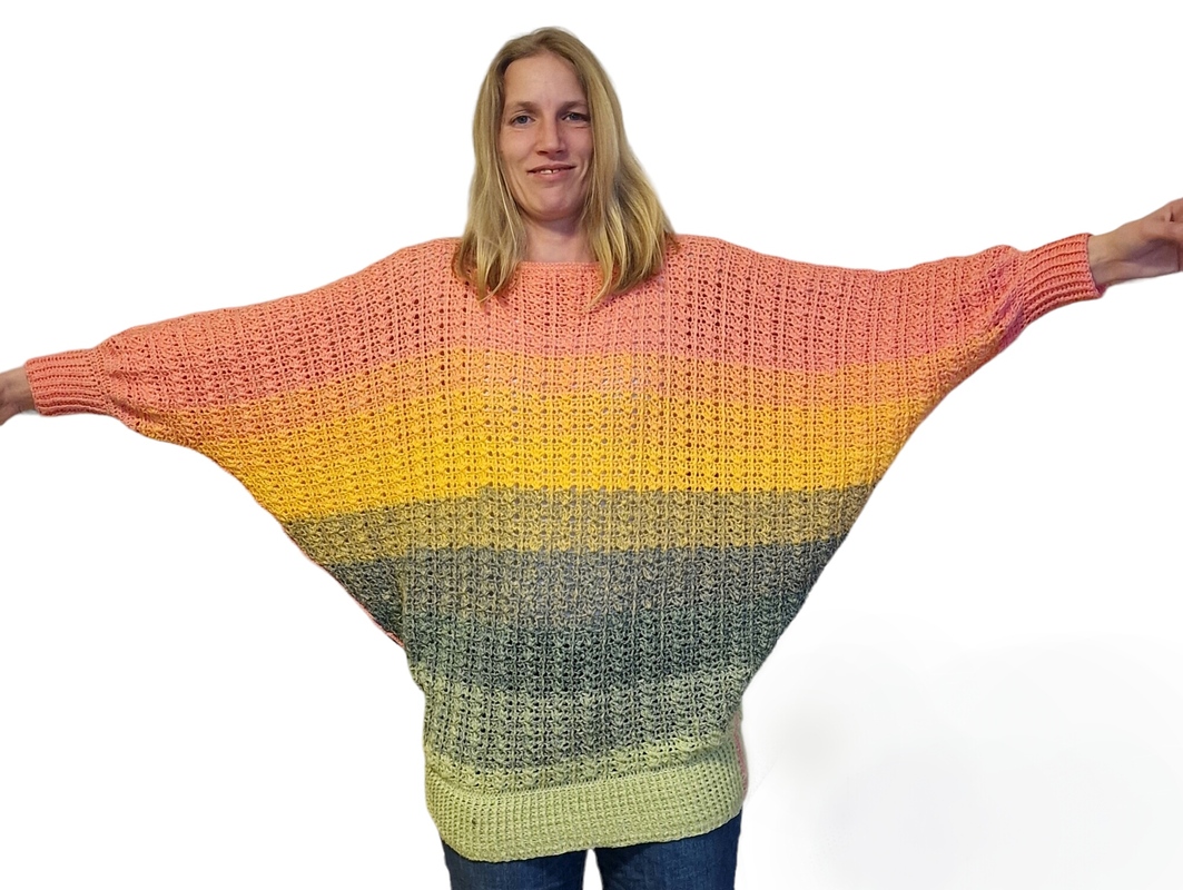 Der Fledermauspullover kann in jeder Kleidergröße gehäkelt werden.