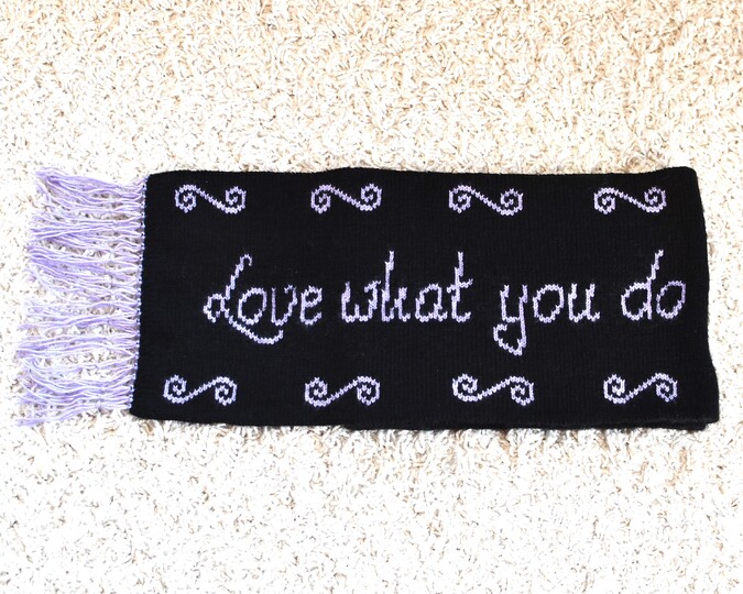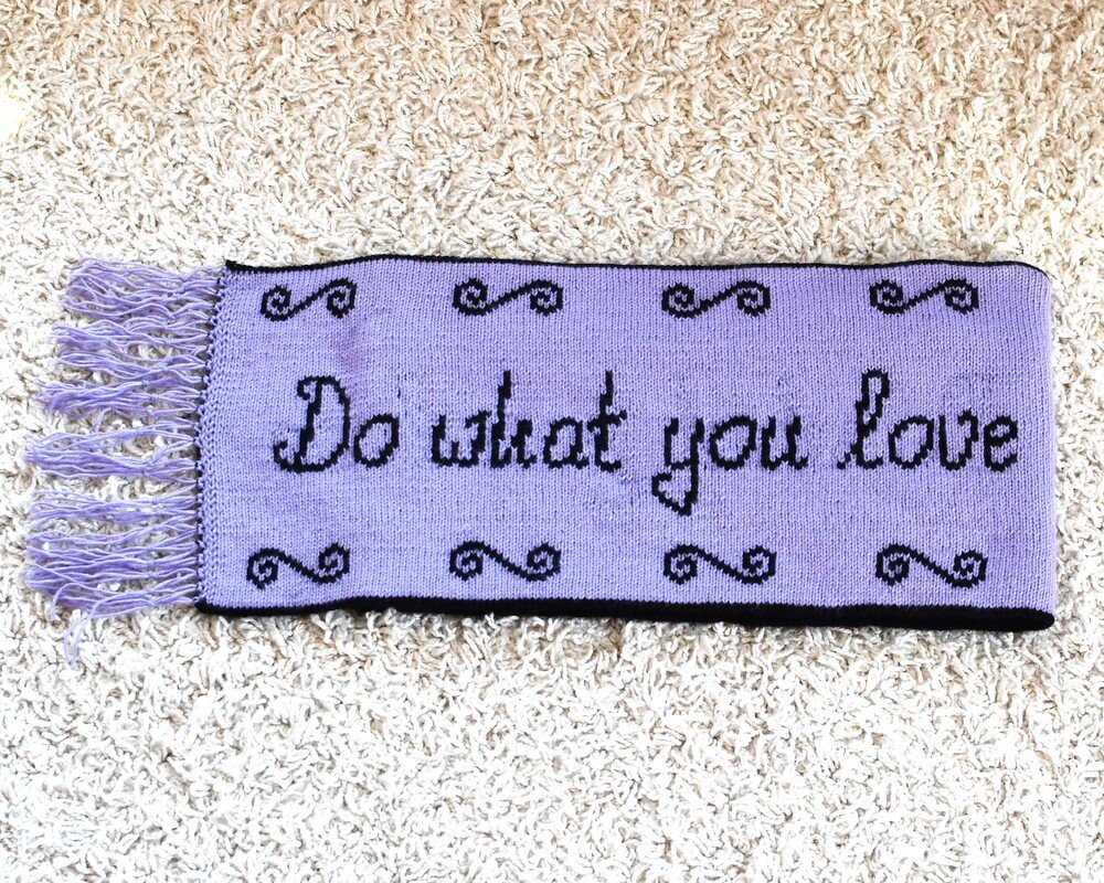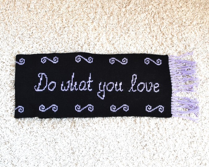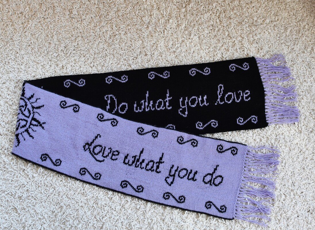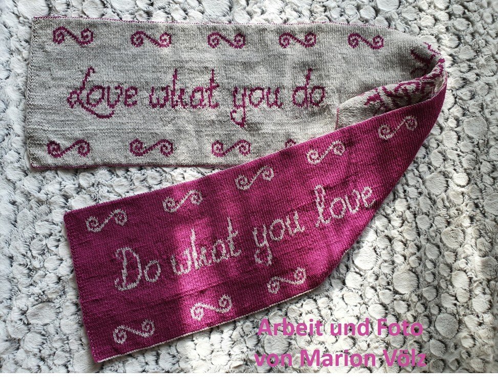 „Do what you love“ und “Love what you do” – wer das beherzigt, kommt gleich ein Stück weit glücklicher durch’s Leben. Auch wenn es im Alltag manchmal schwierig umzusetzen ist, hilft es doch, sich das immer wieder in Erinnerung zu rufen. Dieses schöne Lebensmotto habe ich in einer kuscheligen Stola umgesetzt, ergänzt um eine strahlende keltische Sonne. Die Schriftzüge können ebenfalls als Verlängerung für eine (Baby-)Decke verwendet werden, siehe Beispiel auf dem letzten Produktbild.