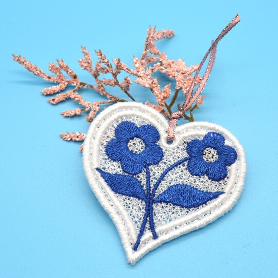 Eine leichte und luftige Stickdatei in Spitzen-Optik, die ohne Stoff gestickt wird und "frei steht".