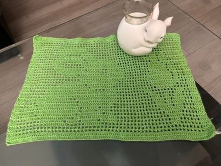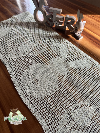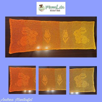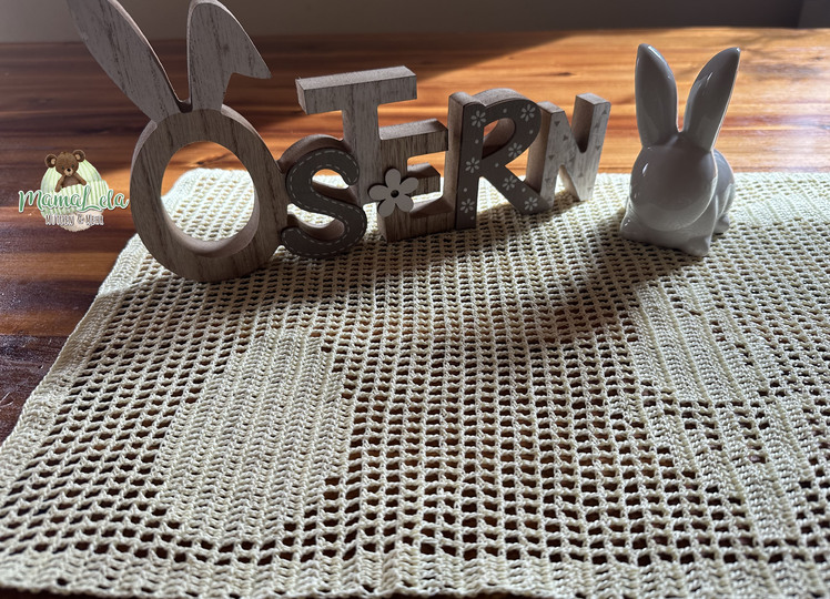 Mit dieser Häkelanleitung könnt ihr euch einen Tischläufer oder Tischsets mit österlichem Design zaubern.