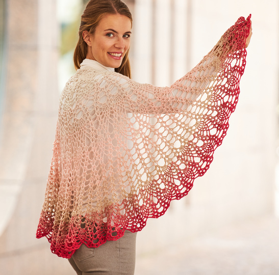 Das Tuch wird nach ausführlicher Häkelschrift gearbeitet.