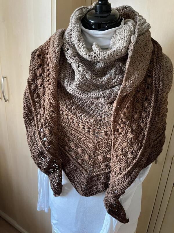Hier erhältst du die Anleitung für ein flaches Dreieckstuch, das aus einem besonderen, plastischen und auffälligen Muster besteht.