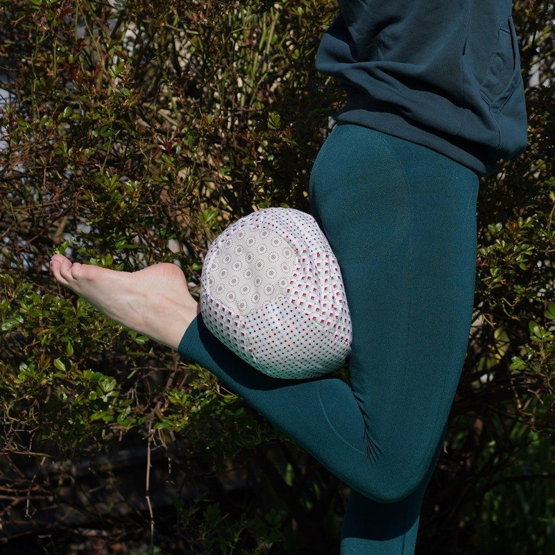 Als Pilatesball empfehle ich die 20cm und 25cm Größe mit 75%-tiger Styropor- kügelchen-Füllung. Der helle Ball auf dem Foto ist 25cm groß.