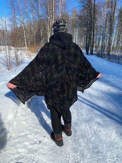 Neliö - das finnische Wort für Quadrat. Und genau dies ist die Anleitung, ein gehäkeltes Quadrat. Aber wie so oft, einfache Dinge überraschen durch ihre Vielzahl an Möglichkeiten. Ich habe hier zum Beispiel aus 3 Quadraten einen grossen Schulterüberwurf gehäkelt, den man sich schnell und bequem überlegen kann, wenn es doch mal etwas frisch wird. Meine Testhäklerinnen haben noch ein paar andere Varianten getestet. So kann man zum Beispiel einen Schal häkeln, einen Seelenwämer, einen Poncho oder eine Decke. In der Anleitung findet ihr ein paar Ideen, wie man die Quadrate anordnen kann. Und vielleicht habt ihr ja auch noch ein paar Ideen.