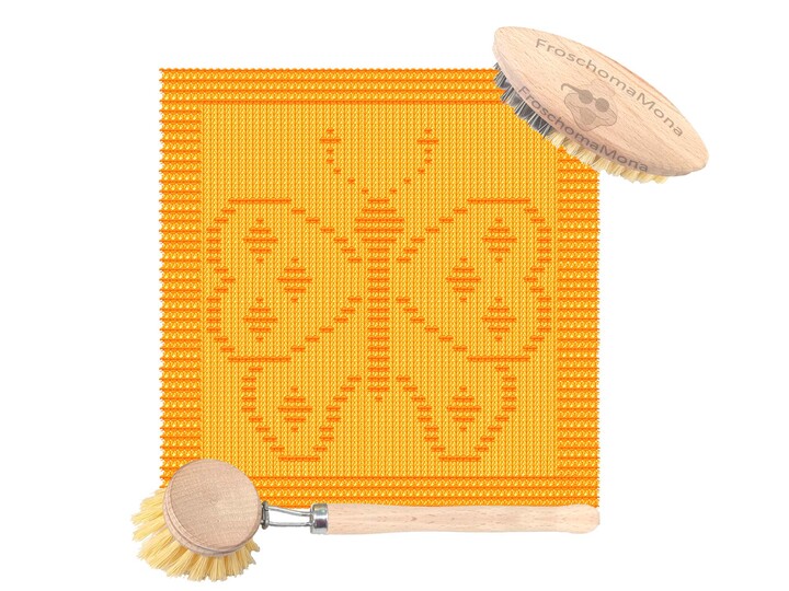 Spültücher und Topflappen mit eingestrickten Motiven sind ein wahrer Hingucker in der Küche.
