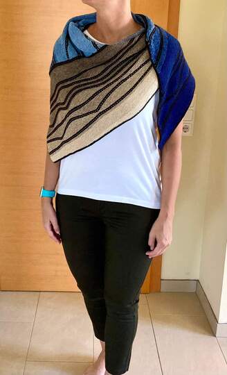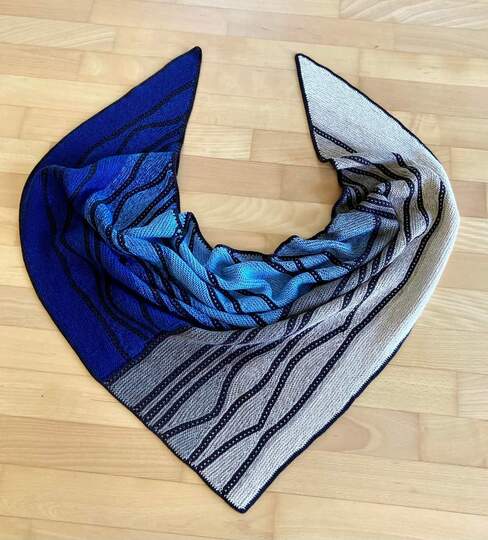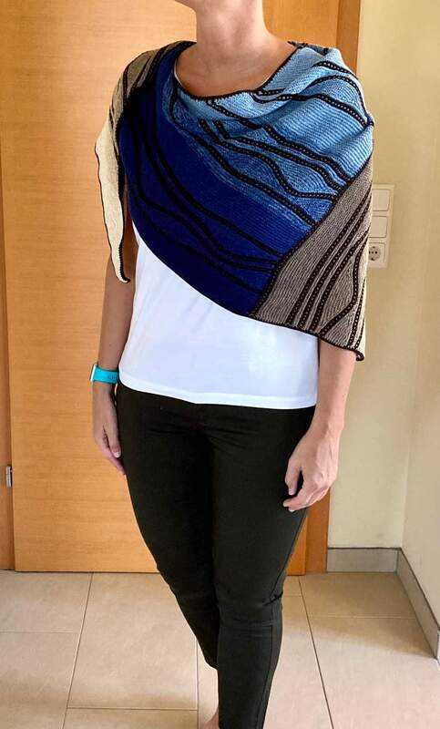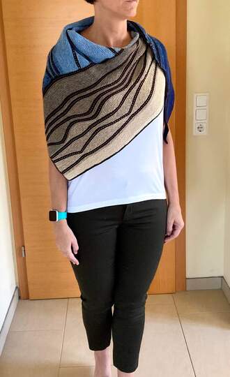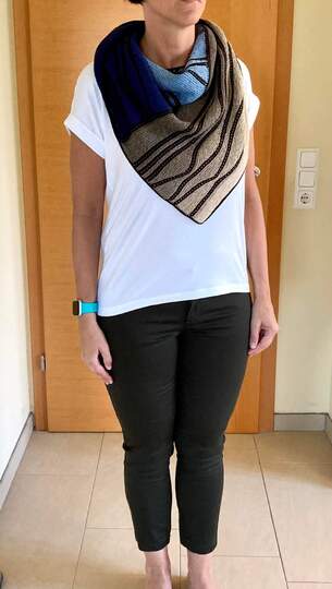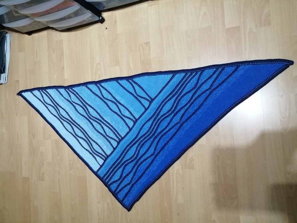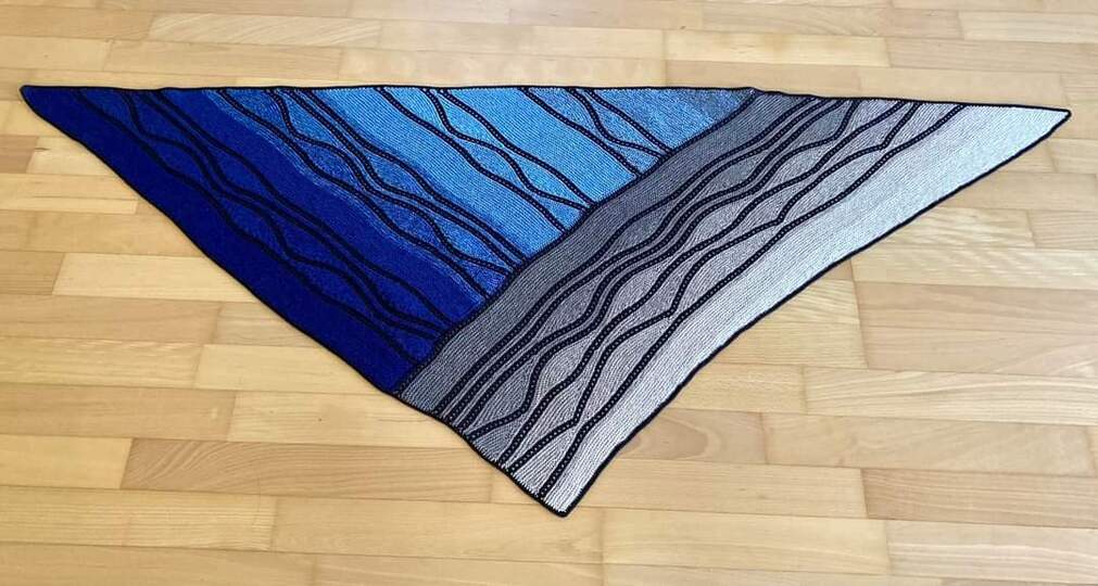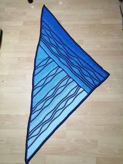 Dieses Tuch ist gleichschenkelig und besteht aus sehr vielen verkürzten Reihen.