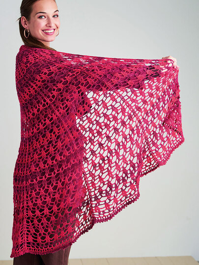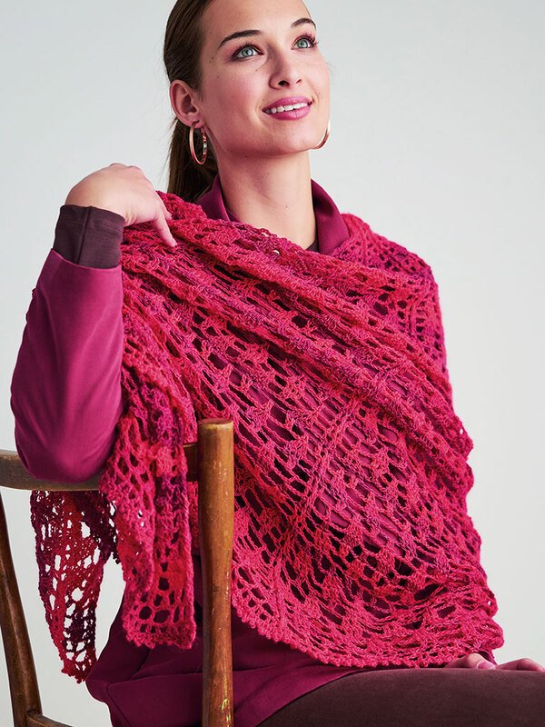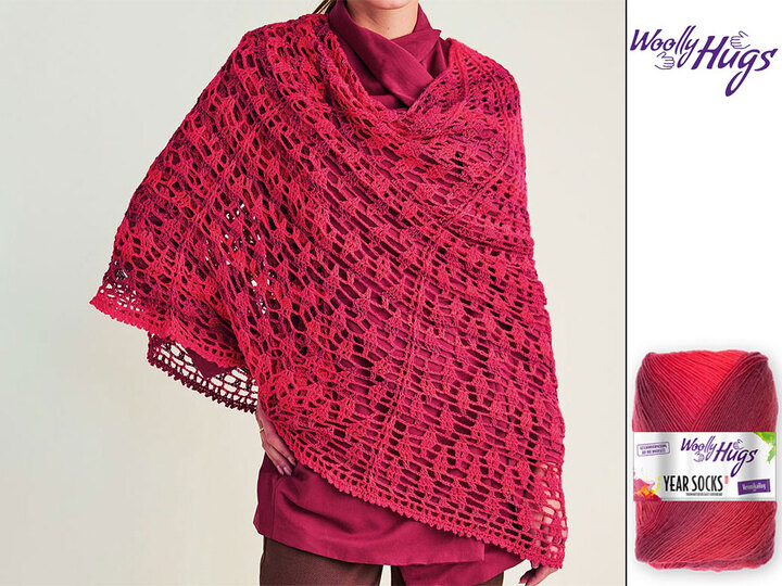 Dieses riesige gehäkelte Tuch in leuchtendem Rot ist perfekt zum Reinkuscheln und bietet eine angenehme Wärme. Das luftige Muster und der runde Schnitt geben dem Tuch eine besonders schöne Form. Häkel dir dieses einzigartige Stück und genieße dieses kuschelige Tuch.