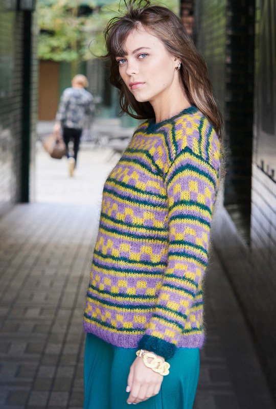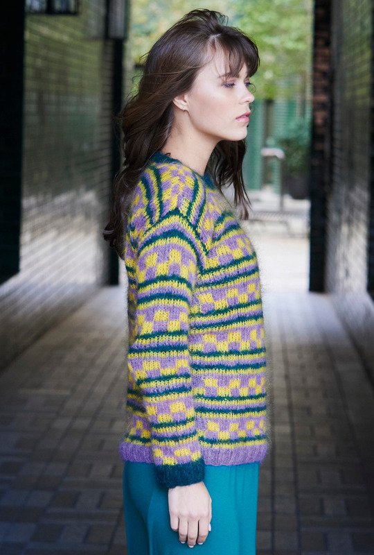 Ein super Alltagsbegleiter: Dieser kuschelige Jaquard-Pulli zieht alle Blicke auf sich. Alle Teile werden einzeln von unten nach oben gestrickt und zum Schluss zusammengenäht. Die Bündchen sind im elastischen Rippenmuster gearbeitet. Durch den schlichten, geraden Schnitt kann man sich beim Stricken ganz auf das tolle, ausdrucksstarke Muster konzentrieren. Mit der ausführlichen Strickschrift und dem detailierten Schnitt in der Anleitung ist das Nacharbeiten überhaupt kein Problem. Gestrickt wird mit Nadelstärke 5 und 5,5, das Garn gibt es bei Lana Grossa. Die Anleitung kann in den Größen 36, 38/40 und 42/44 umgesetzt werden.