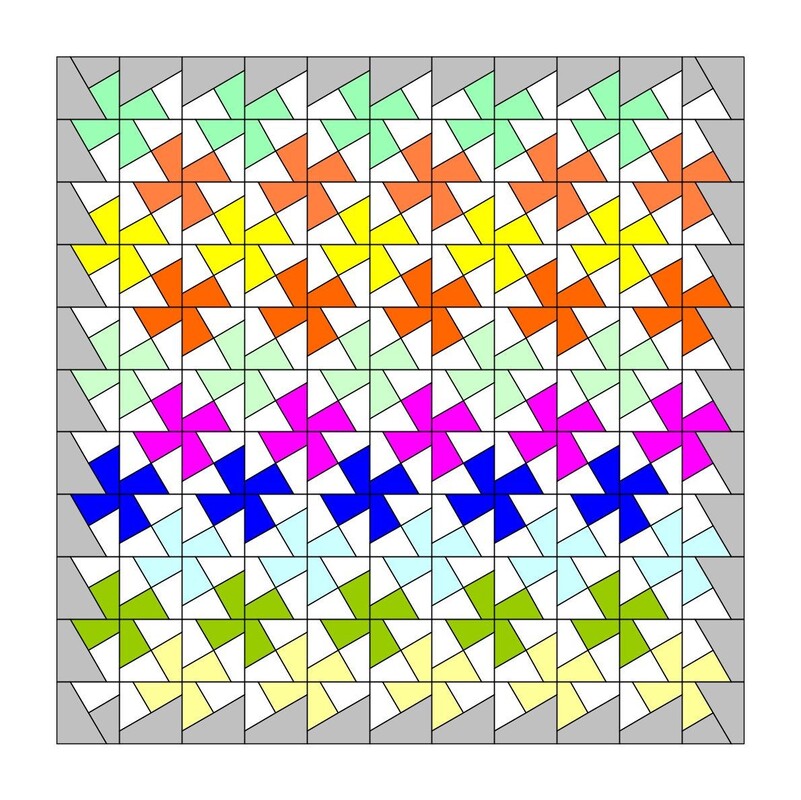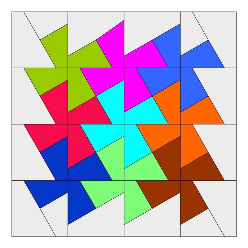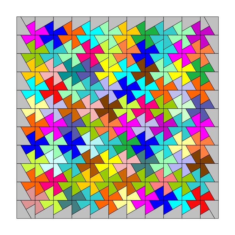 Das hier angebotene Flic-Flac-Muster (1 Block) besteht aus 16 Quadraten in folgenden 4 verschiedenen Dimensionen.