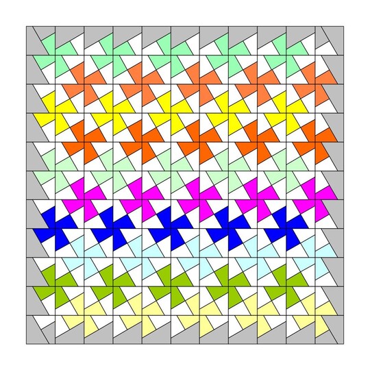 In dem vorliegenden digitalen Artikel wurde das beliebte Flic-Flac-Muster in die FPP Methode übersetzt/überführt. Der Vorteil der hier angewandten FPP-Technik zur üblichen klassischen Nähtechnik dieses Musters ist die hohe Genauigkeit und außerdem die Flexibilität während der Realisierung eines Projektes. So kann man z. B. vor Nähbeginn die zugeschnittenen „Windmühlen“ zusammenlegen und prüfen, ob die Stoffkombinationen stimmig sind. Weiterhin können die Vorlagen mittels Heimprinter beliebig ausgedruckt werden, sodass die benötigten Quadrate bzw. Blöcke für eine geplante Patchworkarbeit und damit die letztendliche Grösse des eigenen Projektes nach Belieben variiert werden kann.