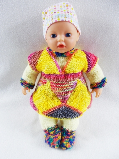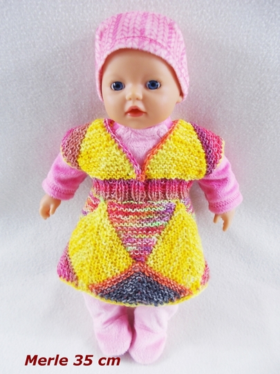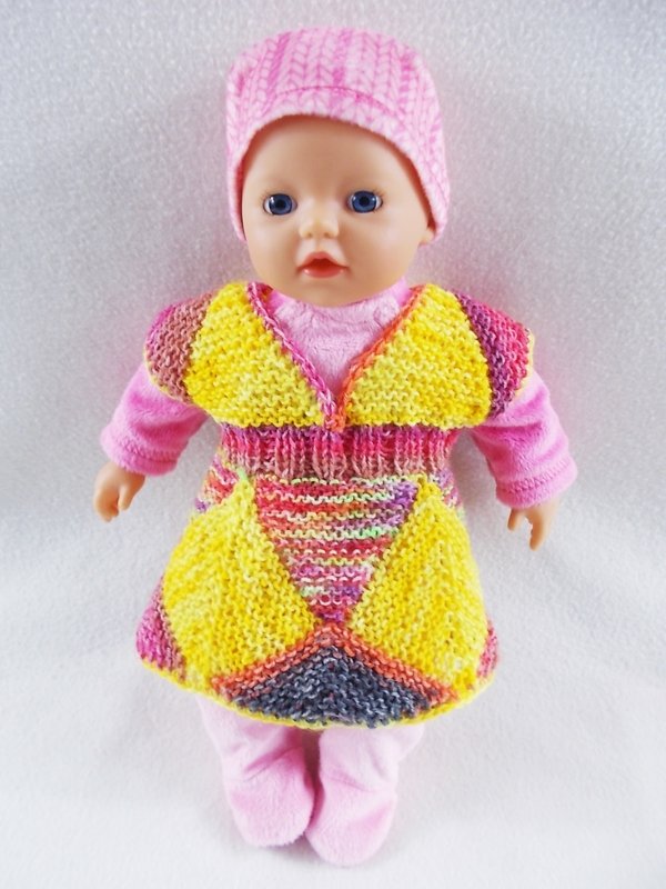 Mit dieser Anleitung kannst du verschiedene Versionen und Größen eines Puppenkleidchens stricken. Sogar ein Röckchen ist möglich. Ja, du kannst hier alle Puppenkinder von 35 bis 50 cm einkleiden. Ein Traum für jede Puppenmutti.