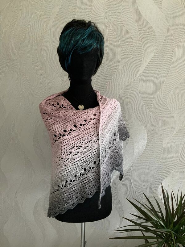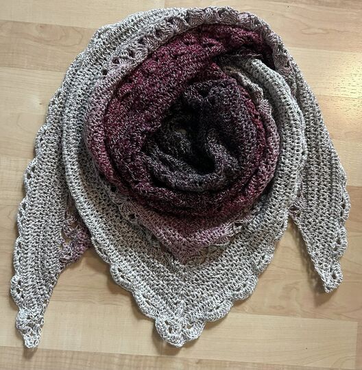 Ein klassisches Dreieckstuch das du in jeder beliebigen Größe häkeln kannst. Die Muster werden stets wiederholt.