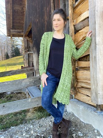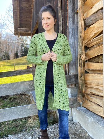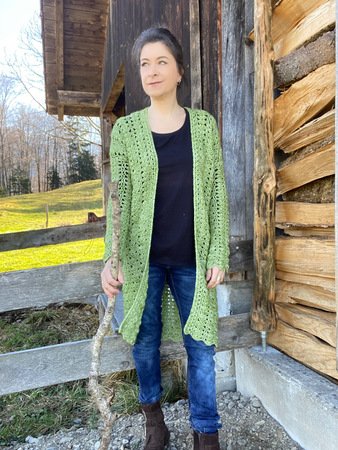 Ein Figurschmeichler in einem tollen Muster: Dieser Häkelmantel ist ein Hingucker – egal, in welcher Farbe! An kühleren Tagen ersetzt er eine Jacke und ist trotzdem sehr luftig. Offen getragen ist dieser Mantel ein lässiges Kleidungsstück, das gut zu schmalen Hosen, Boots oder Sneakers passt.