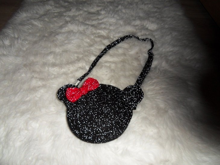 Diese Tasche ist aus reflektierendes Garn gearbeitet, bei Tag ist sie schwarz. Man kann es auf den