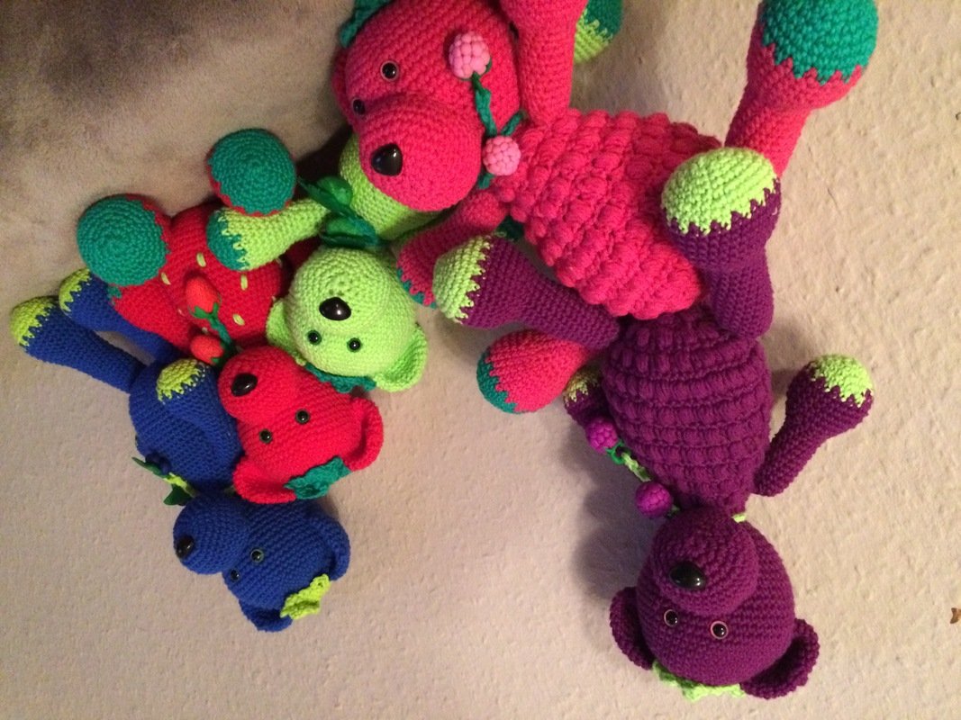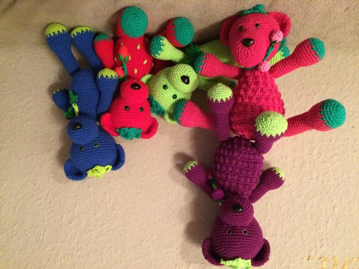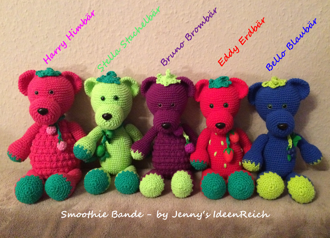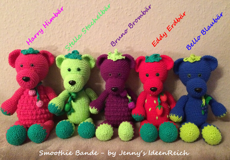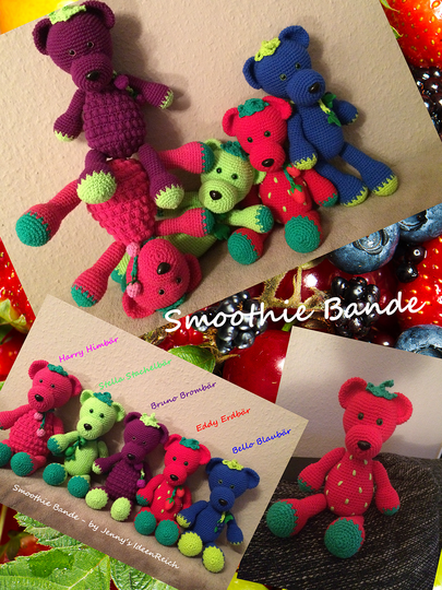 Ihr könnt hier die komplett ausformulierte Häkelanleitung zu den 5 Smoothie Teddys erwerben.