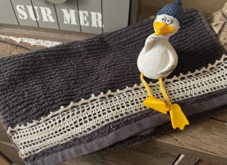 Die Anleitung ist einfach erklärt. Die Gardine besteht aus Luftmaschen, Stäbchen und festen Maschen.